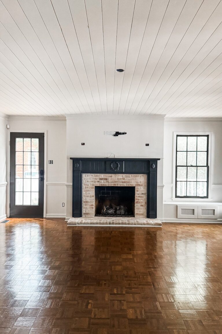 Our living room has always felt cozy, but the flat 8-foot ceiling just… lacked personality. It was a big blank canvas begging for texture and charm, so now that we’re embarking on the living room makeover, it was the perfect time to do it.