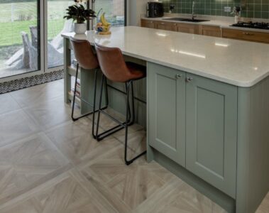 Consider the colour of your kitchen units, countertops, and flooring when choosing a colour for your kitchen doors. This is as important for smaller kitchens and larger open plan spaces.