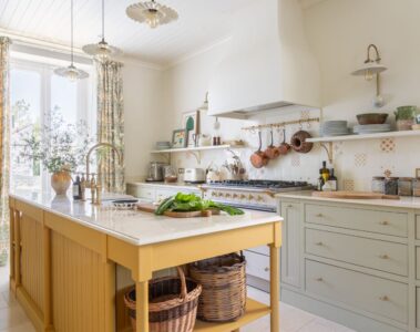 This is “island living” with a serious edge. It sheds the typical bright-white beach aesthetic for something moodier and far more grounded. Between the custom millwork and the warmth of the wood island, it feels like a space that honors its history while embracing a “lively,” sophisticated future. It’s relaxed, yes—but it’s dressed to impress.